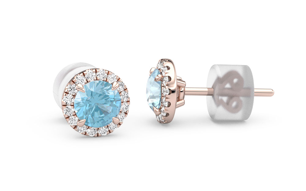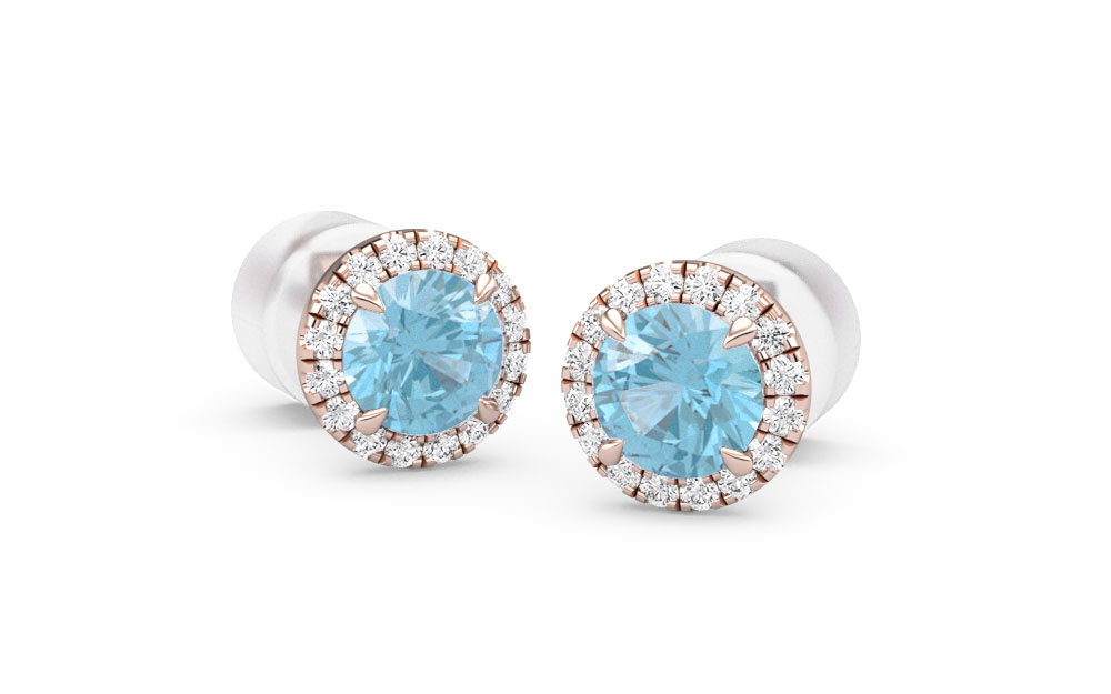 Emitting a gorgeous sky-blue hue, these stud earrings feature two blue topazes. Complete with a halo of pavé accent diamonds, these earrings offer the perfect balance of beauty and sparkle.