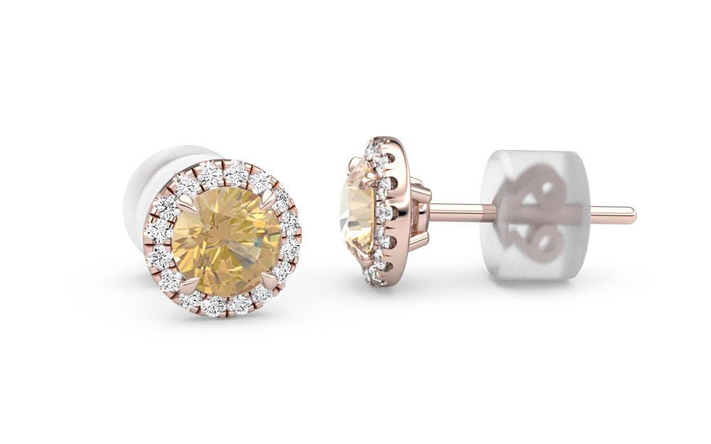 Emitting a gorgeous golden-yellow hue, these stud earrings feature two citrines. Complete with a halo of pavé accent diamonds, these earrings offer the perfect balance of beauty and sparkle.