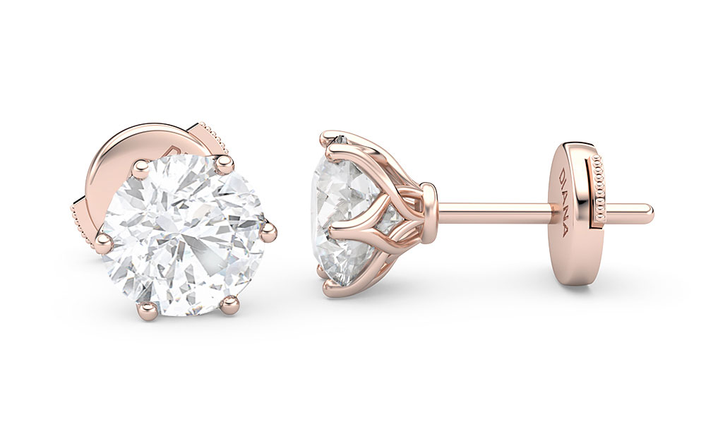 These stunning stud earrings feature a pair of brilliant round-cut diamonds and delicate floral detailing behind each stone. Complete with Swiss guardian backs which lock into place, these earrings offer maximum security.