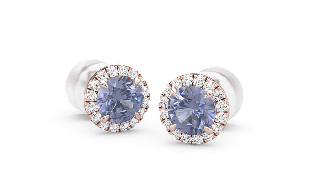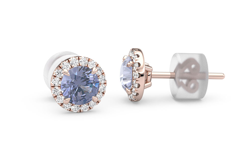 Emitting a gorgeous violet-blue hue, these stud earrings feature two iolites. Complete with a halo of pavé accent diamonds, these earrings offer the perfect balance of beauty and sparkle.