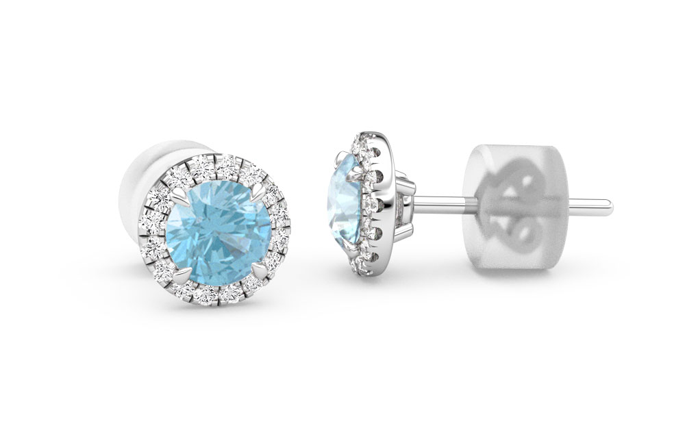 Emitting a gorgeous sky-blue hue, these stud earrings