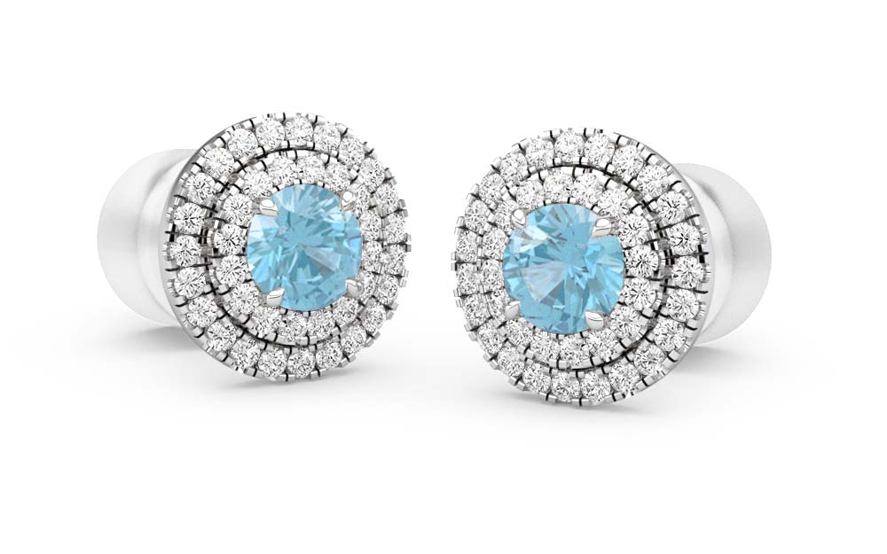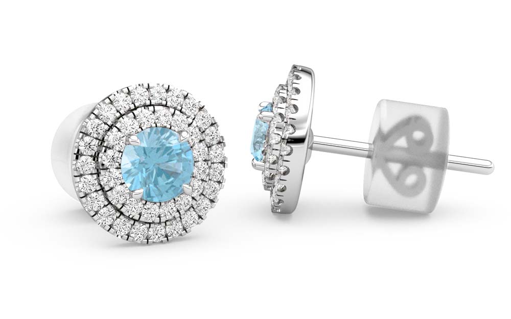Blue Topaz & Diamond Halo - Stud Earrings