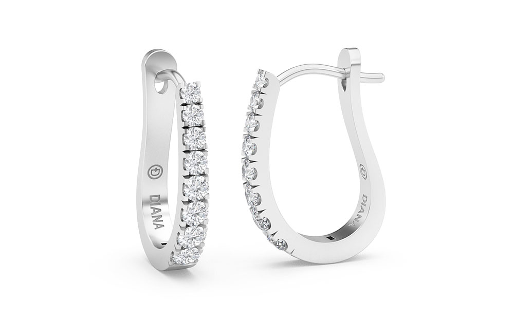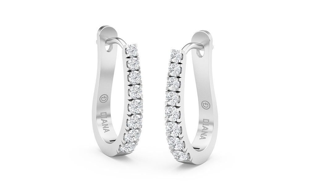 stunning hoop earrings each feature a shimmering row of eight diamonds that