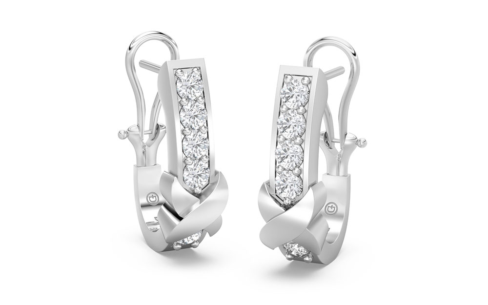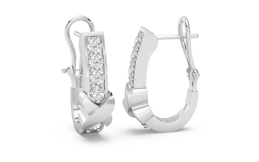 striking, these hoop earrings feature a shimmering row of diamonds on either