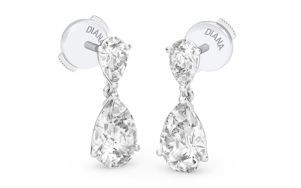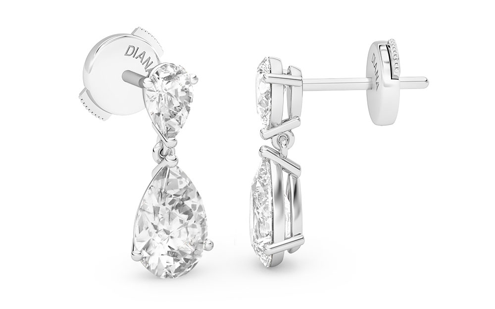 Creating a beautiful hourglass shape, these drop earrings feature a larger pear-shaped diamond suspended from an inverted pear diamond. Truly breathtaking, these earrings are a must-have for special occasions.