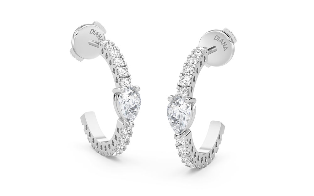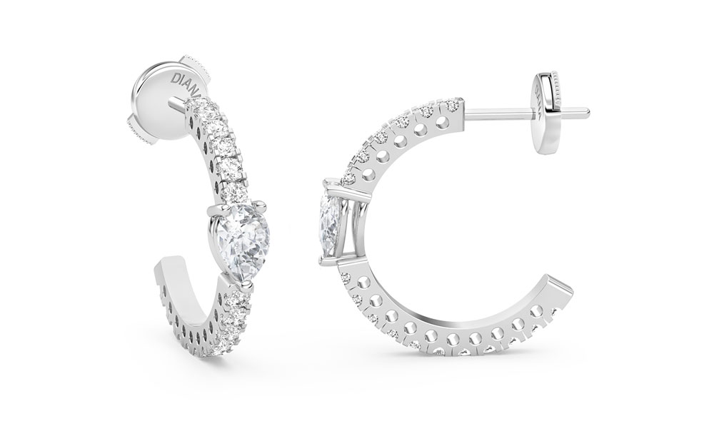 hoop earrings feature sparkling accent diamonds on either side of a pear-shaped