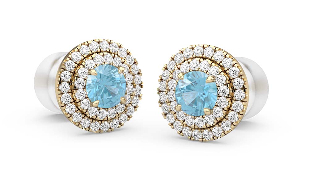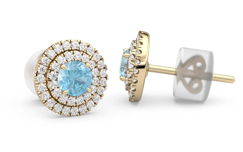 Emitting a gorgeous sky-blue hue, these stud earrings feature two blue topazes. Complete with a double halo of shimmering accent diamonds, these earrings are a definite eye-catcher.