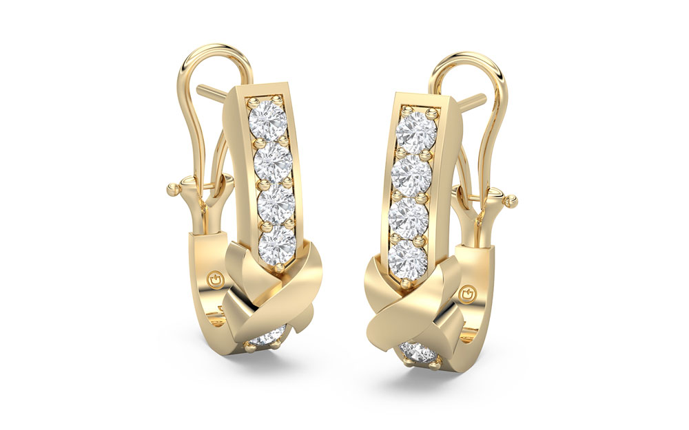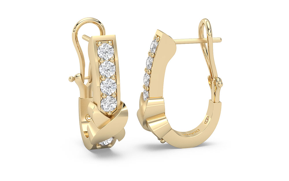 Undeniably striking, these hoop earrings feature a shimmering row of diamonds on either side of a metal ‘X’ motif. Complete with French clips, these earrings offer maximum security and comfort.
