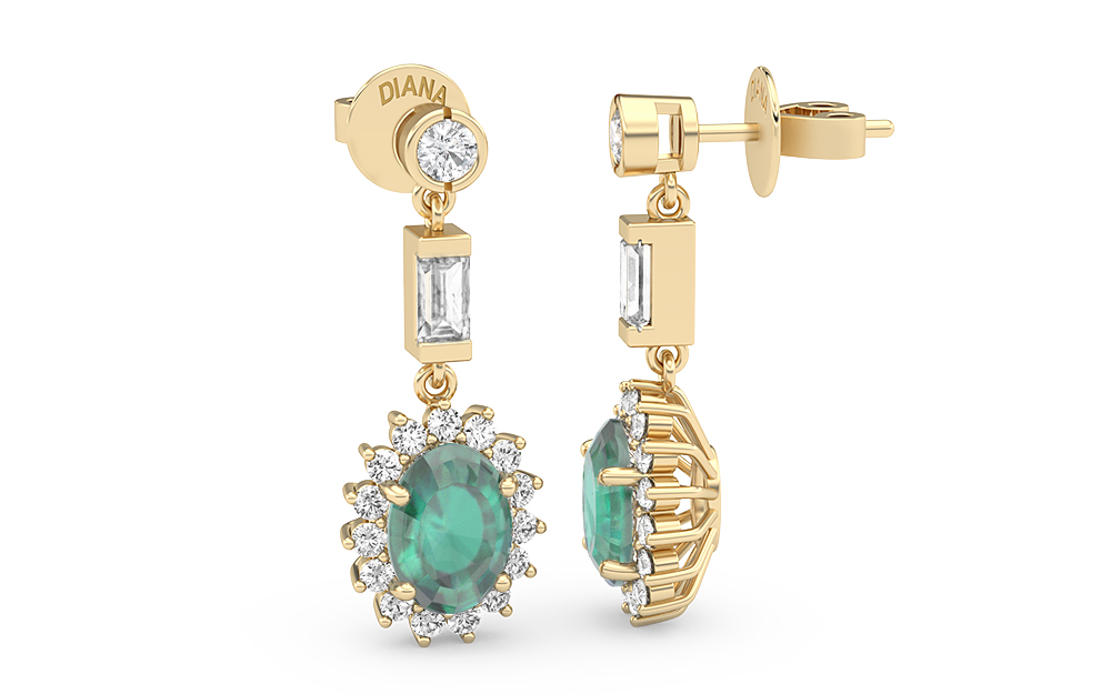 Oval Emerald & Diamond - Drop Earrings