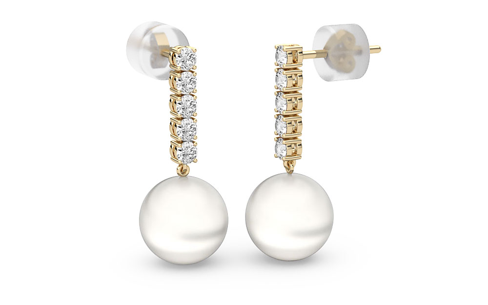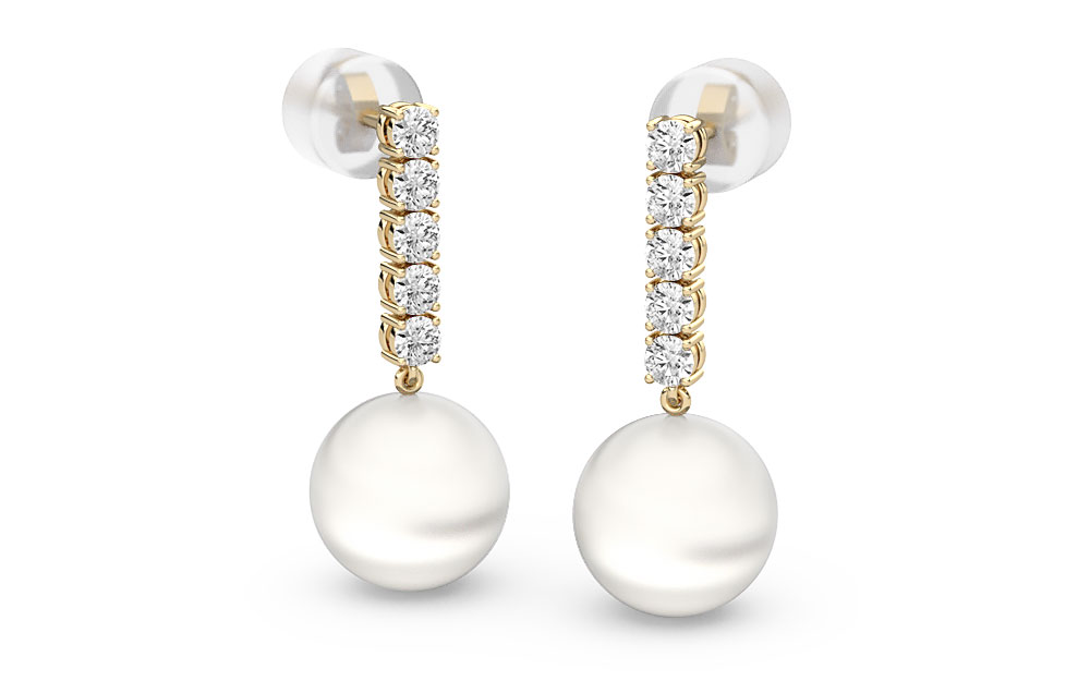 Timeless and elegant, these drop earrings feature a pair of lustrous white South Sea pearls dangling from a line of shimmering diamonds. Truly breathtaking, these earrings are a must-have for special occasions.