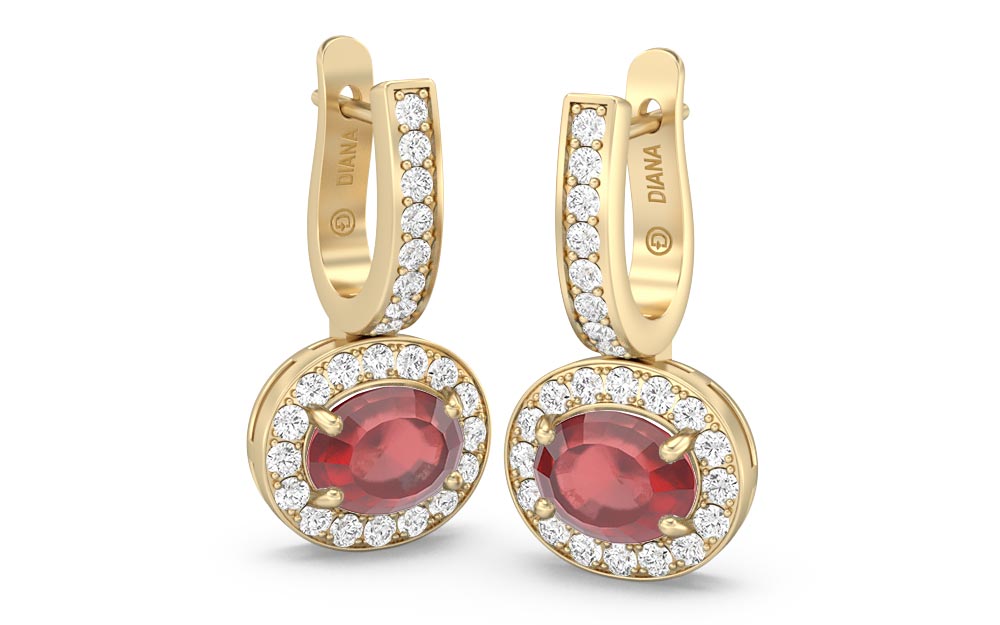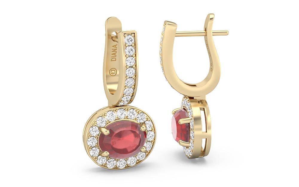 red hue, these drop earrings feature a pair of natural oval-shaped rubies.