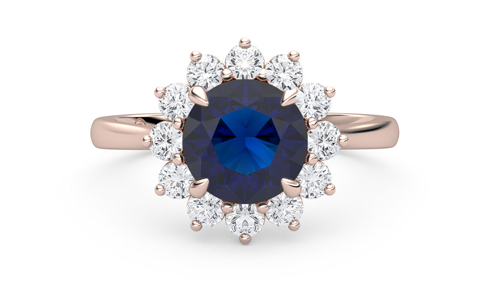 Round Sapphire & Diamond Halo - Gemstone Ring