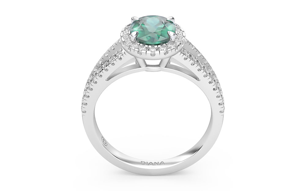 diamond halo. Complete with a diamond-studded split shank, this design offers