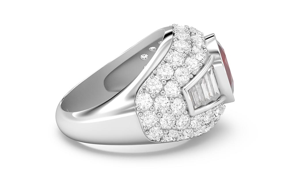 with round and baguette accent diamonds, this ring is a definite eye-catcher.