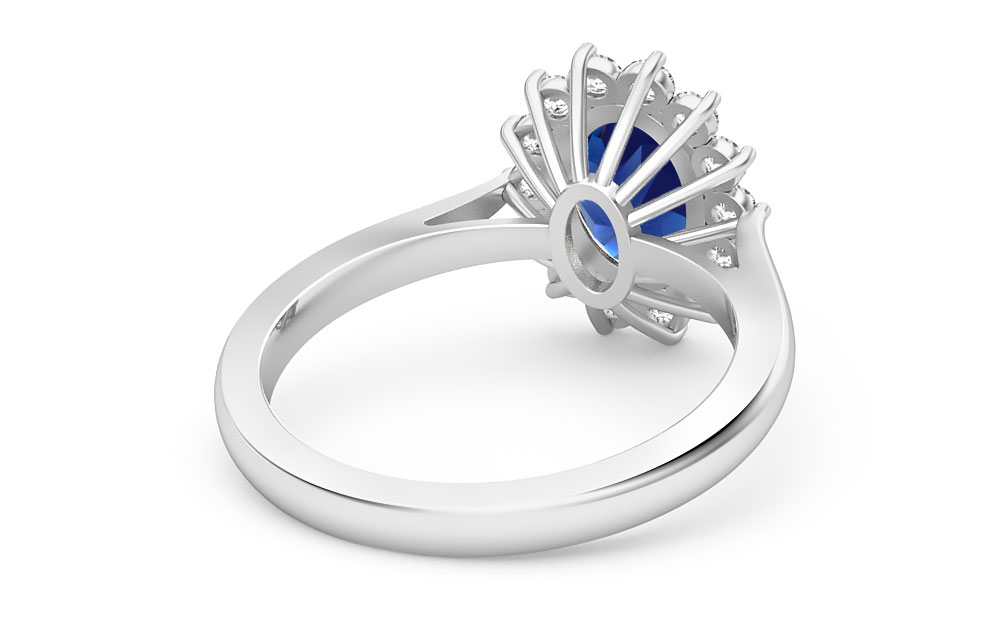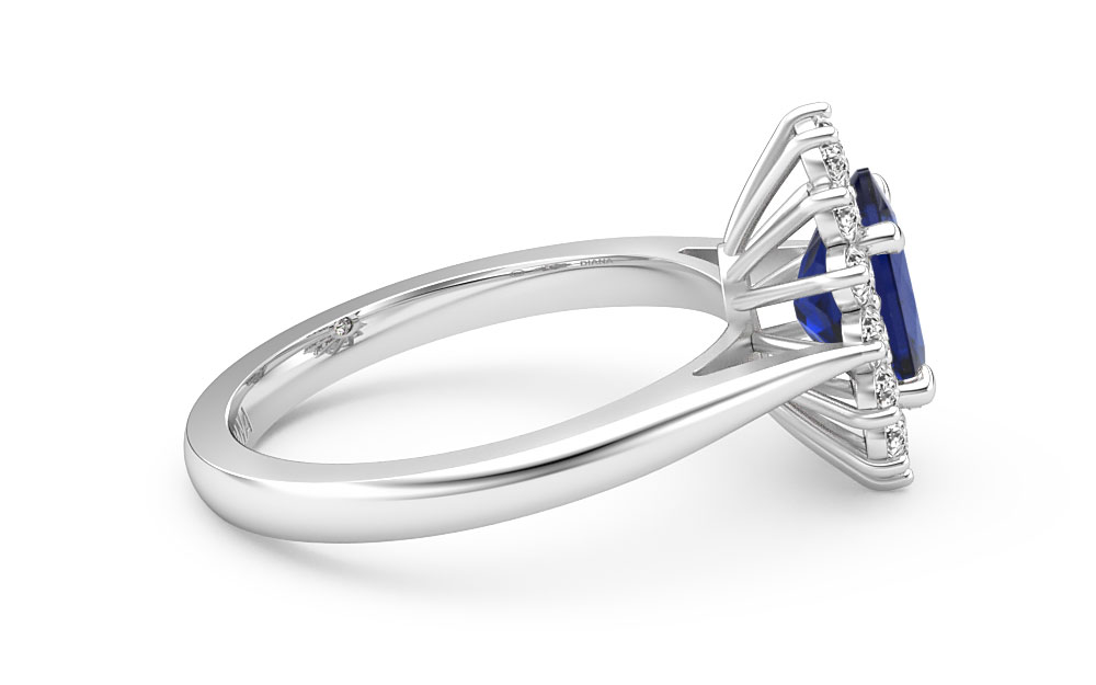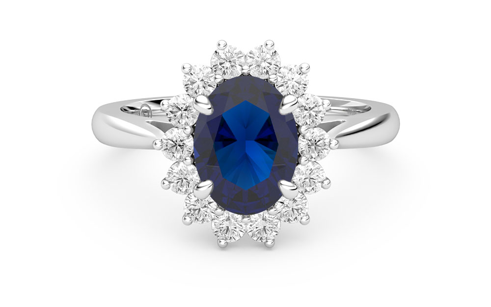 beautiful blue hue, this ring features an oval-shaped sapphire. Complete with a