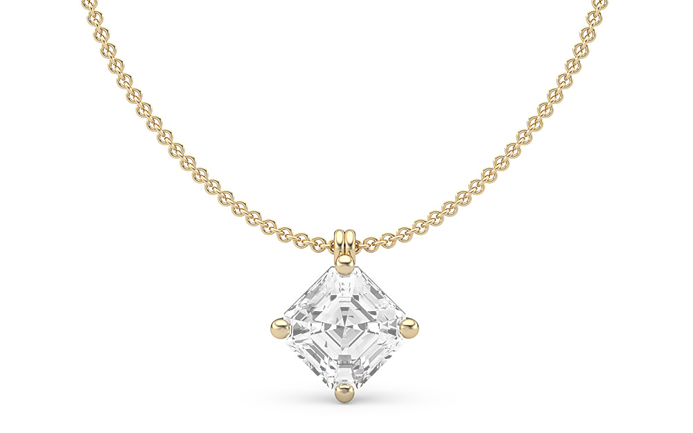 Simple yet elegant, this pendant features a fancy square-shaped emerald hanging from a single corner. Complete with a basket setting, this pendant offers optimal security.