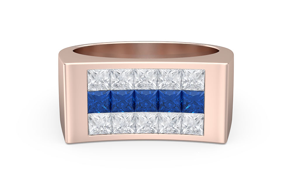 sapphires in an invisible setting. Complete with an inward curve, this design