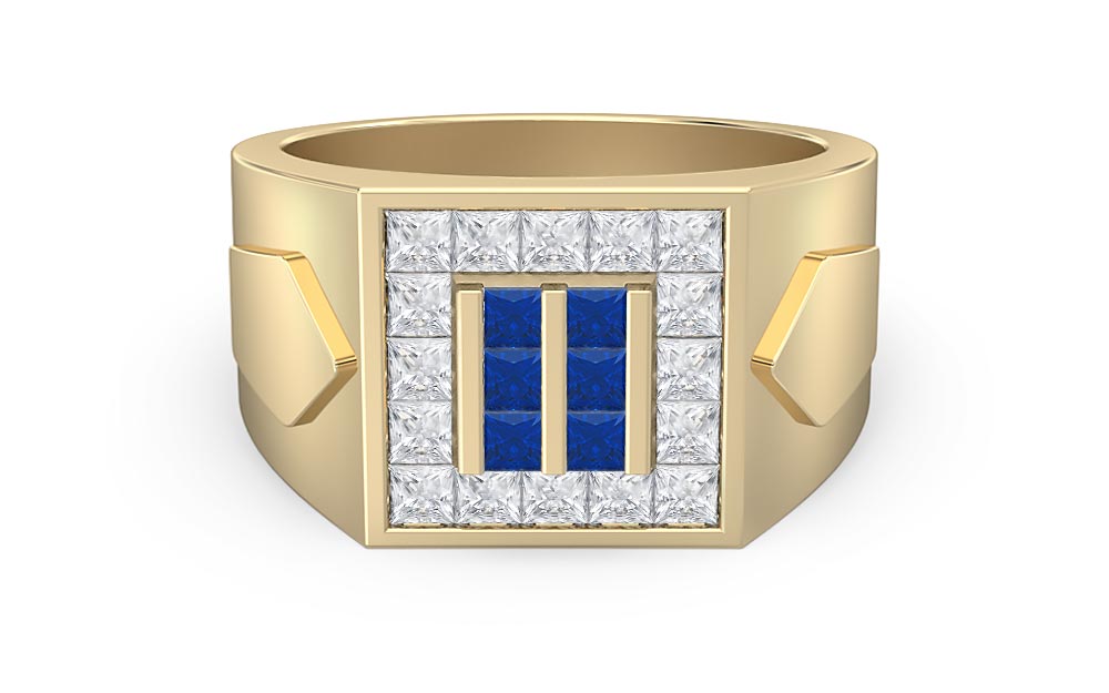 of princess-cut diamonds in an invisible setting. Complete with an embossed design,