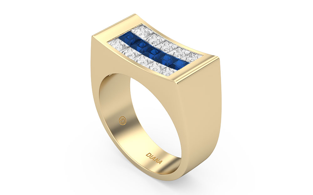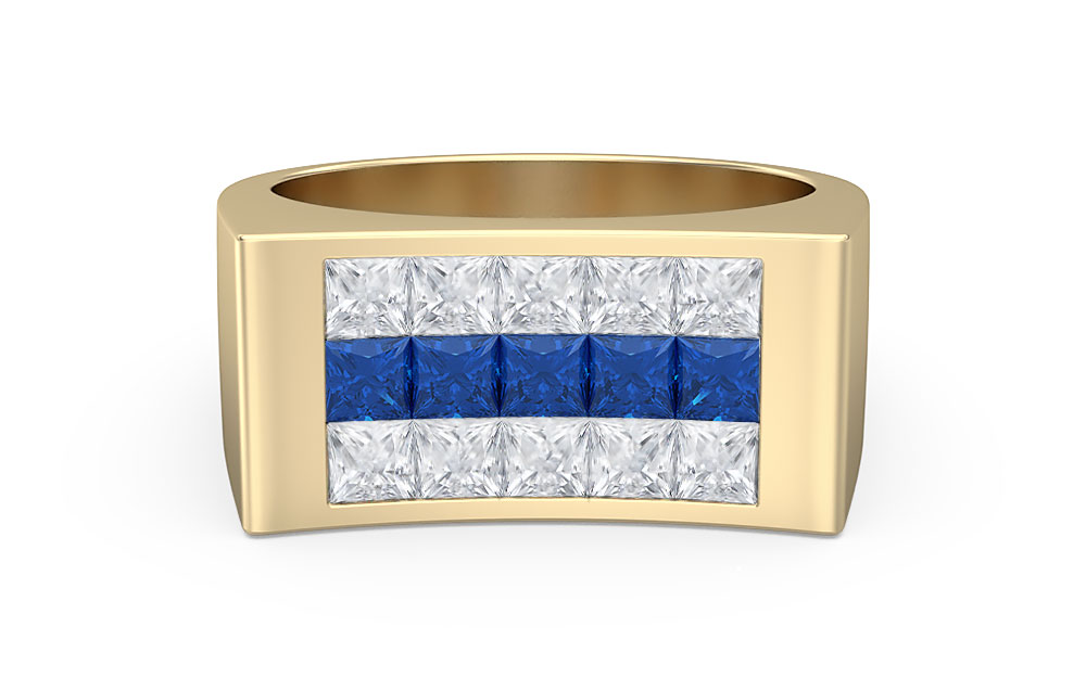 sapphires in an invisible setting. Complete with an inward curve, this design