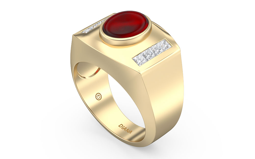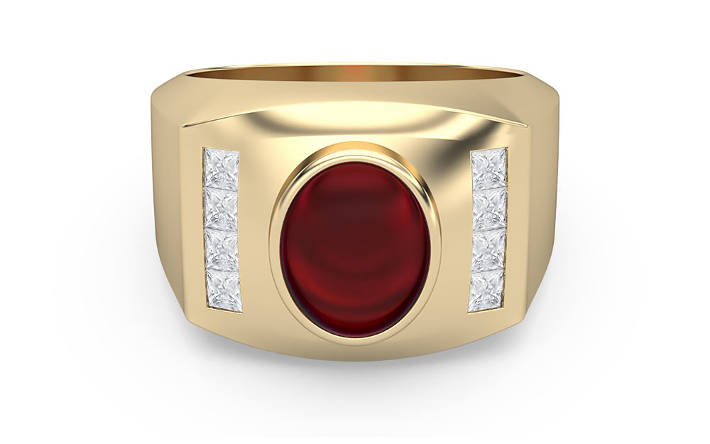 beautiful red hue, this ring features an oval-shaped ruby in a classic bezel