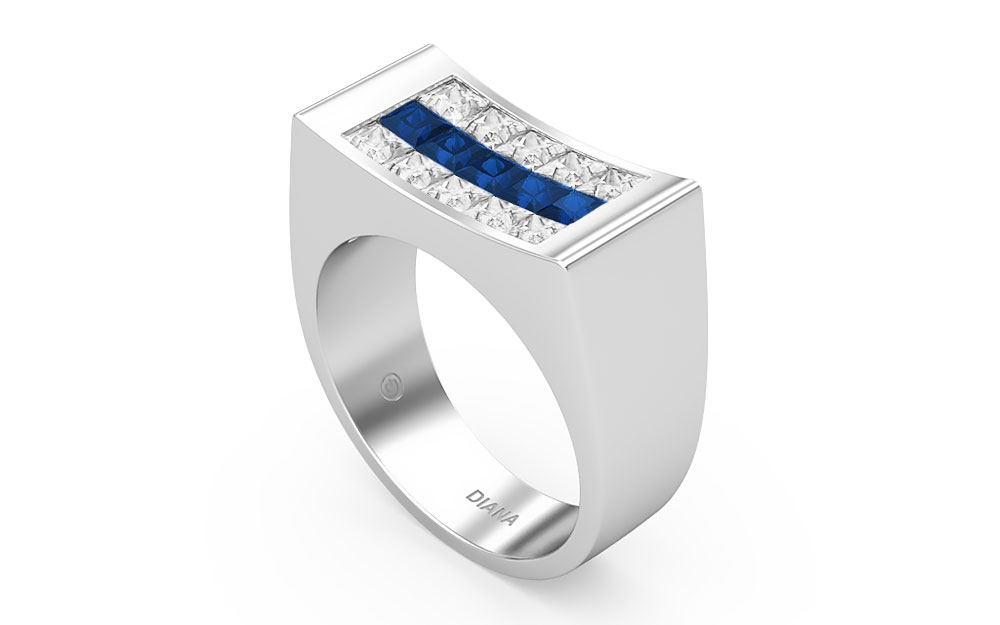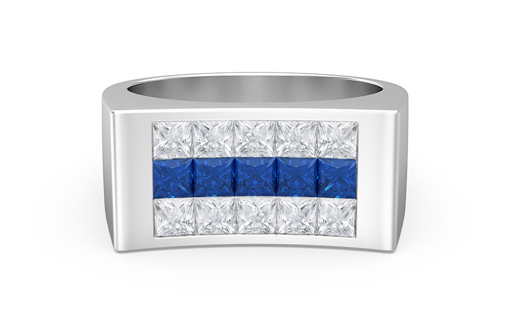 sapphires in an invisible setting. Complete with an inward curve, this design